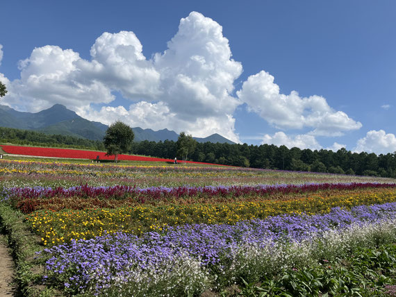 上の写真も、当館から車で10分ほどの所にある八ヶ岳農業大学校のお花畑です色とりどりの花が八ヶ岳の山並みと見事なハーモニーを奏でています。